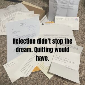 Stacks of rejection letters from agents and publishers — some kind, some blunt, some painfully generic. Each one stung a little. Sometimes a lot.